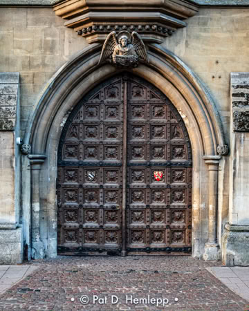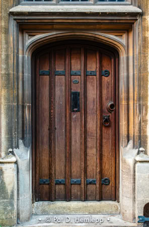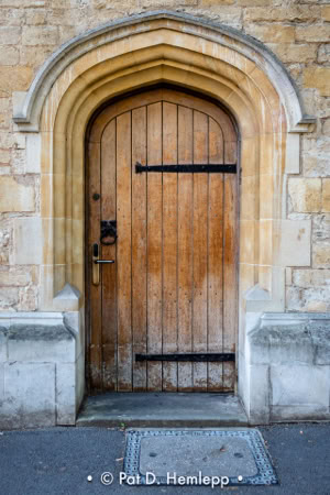 An old door provides an entry to a building on St. Michael's Street in Oxford, England.