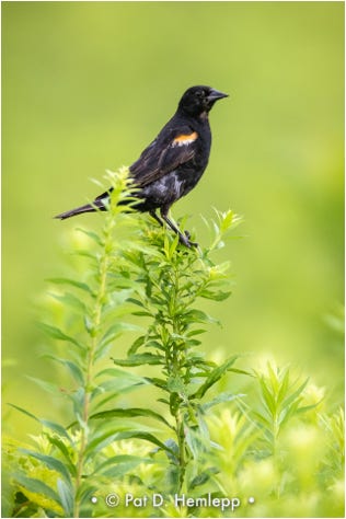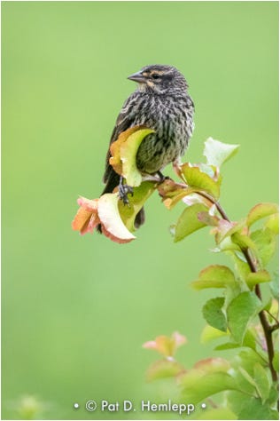 A female Red-winged Blackbird rests in a plant in Sharon Woods Metro Park, Westerville, Ohio.