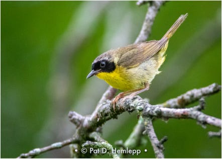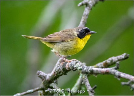 A male Common Yellowthroat perches on a limb in Sharon Woods Metro Park, Westerville, Ohio.