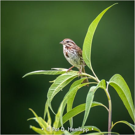 A Song Sparrow perches above a field in Sharon Woods Metro Park, Westerville, Ohio.